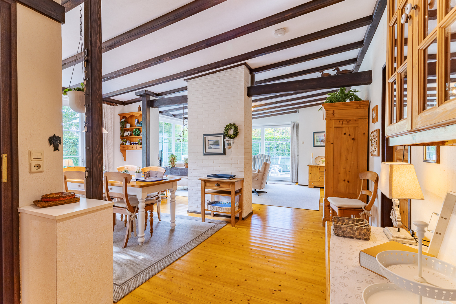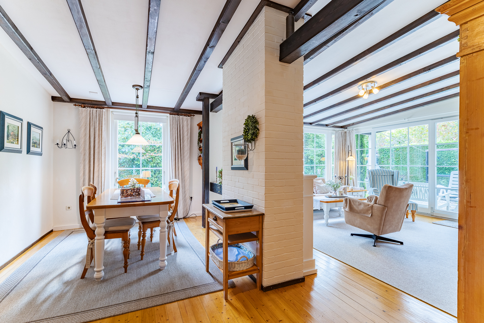 Prachtige vakantiewoning voor max. 8 personen. De woonkamer is ruim en gezellig ingericht met een openhaard.