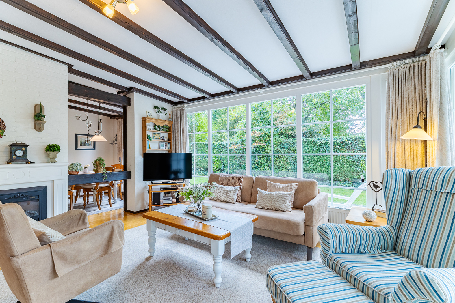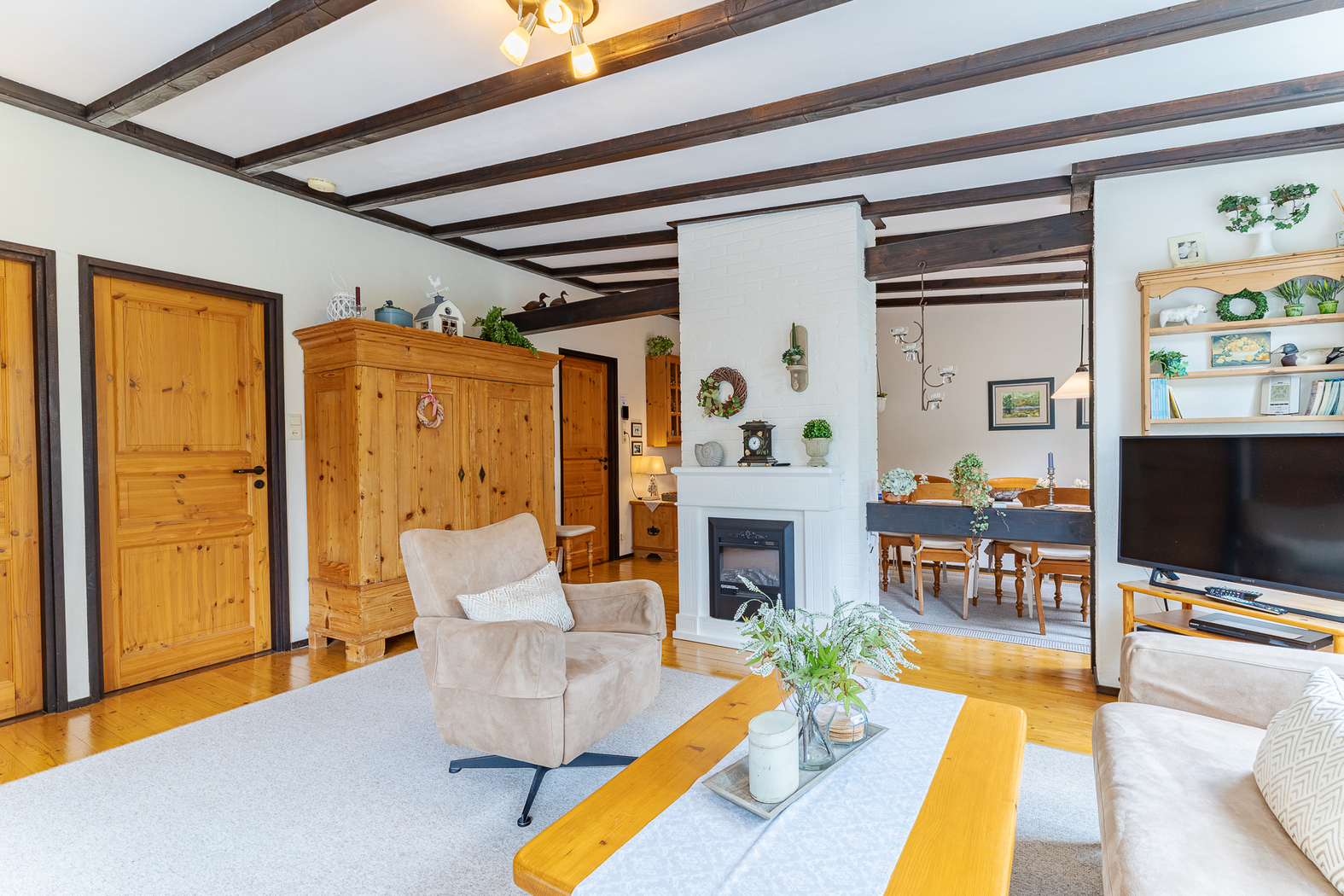 Mooie, ruime vakantiewoning geschikt voor 6 personen. De woonkamer is gezellig en stijlvol ingericht met een gashaard.