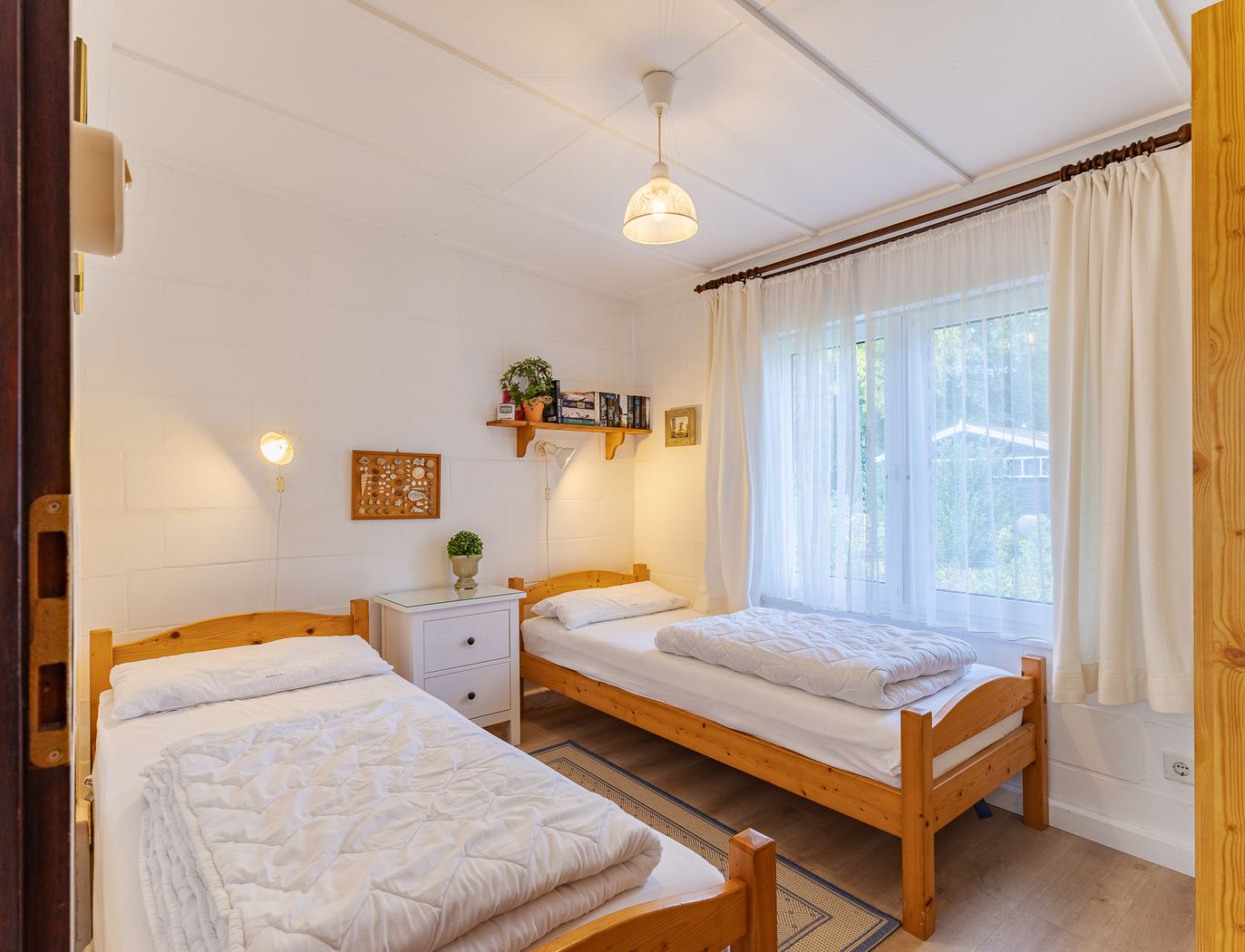 Mooie bungalow voor max. 5 personen in het Oosterpark. De woning ligt op korte afstand van het strand en bos.